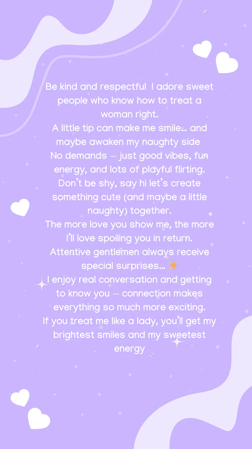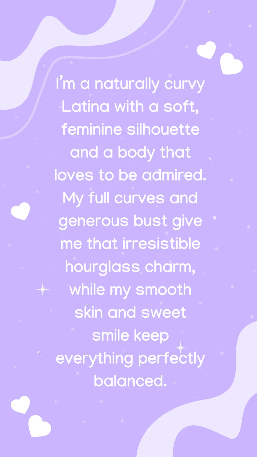 狗爬式, 阿嘿顏, 戶外, 情色舞蹈, 駱駝趾, 指交, 假陽具或按摩棒, 情境扮演, 打屁股, 老二評分, 羞辱, 撸管指導, 性愛玩具, 乳頭玩具, 自慰, 乳交, 按摩, 脫衣舞, 髒話, 皮革, 中出, 深喉, 口交, 性高潮, 高跟鞋, 精油表演, 硬核, 女牛仔, 瑜珈, 無上裝, 扭扭樂, 足交, 戀足癖